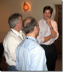 One of the day's discussions centered around Microsoft's involvement with IT Pros and what they could do to improve their relations. This was a worthwhile discussion because for most of its history Microsoft - being a company full of developers - has been much more developer focused than IT Pro focused. What really made it special is that the 50 or so of us invited guests shared the discussion with Steve Ballmer (CEO in case you didn't know), Bob Muglia (Senior VP), and Ron Marsevitch (VP). They listened, asked a bunch of good questions, and took down notes to follow up on. Well, what was interesting is that they themselves didn't take down notes; they had minions from their entourage in the back that took a note whenever they raised an eyebrow :).